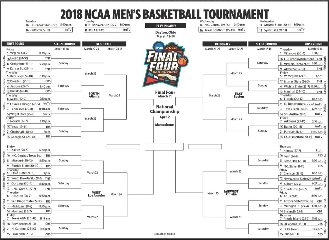 There are no shortage of websites offering both blank, and after the Selection Sunday broadcast airs, filled-in brackets, not every “freebie” is the same. Some offer you the ability to print out the bracket if you are into guessing how the bracketology will work out, while others will provide a fair amount of functionality to enter and save your picks once the pairings are released. The following is a listing of some of the better-known printable brackets available to use for this year’s tourney!