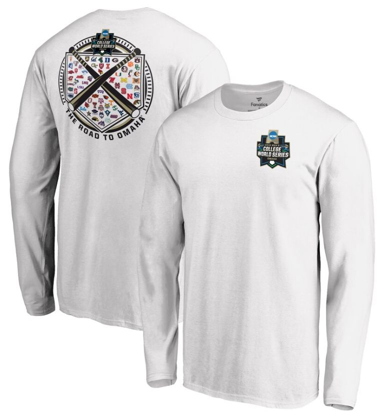 Men’s College World Series 64-Team Long Sleeve T-Shirt (NCAA Baseball White) | Fanatics
